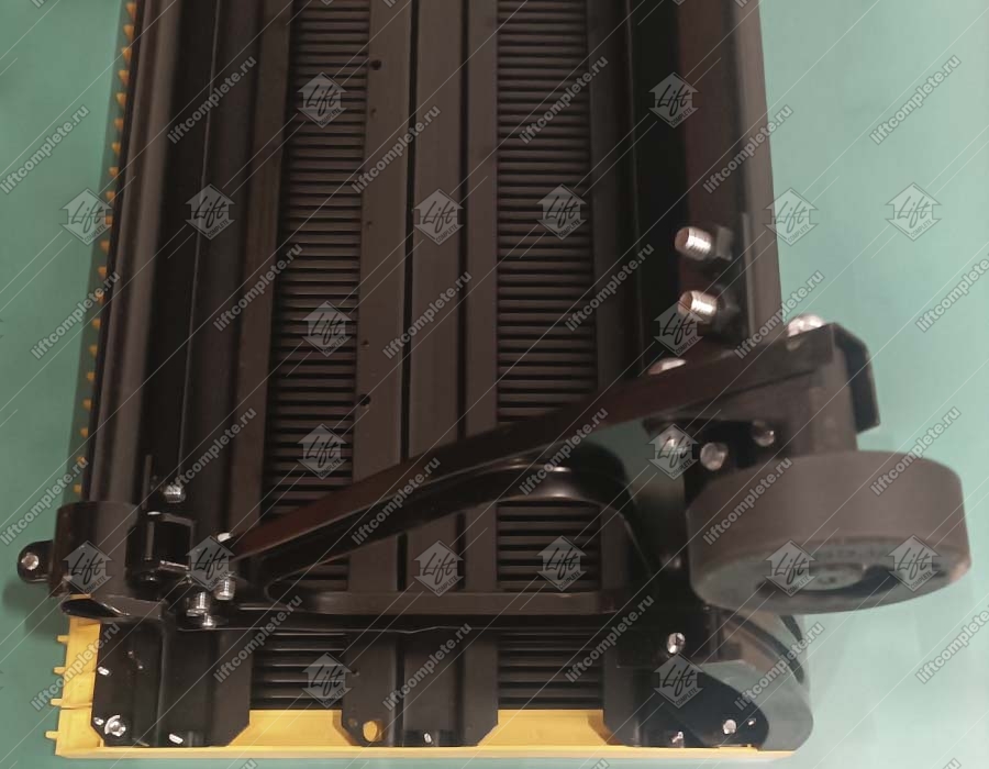 Ступень эскалатора, HYUNDAI, 1000 мм, черная, три желтые пластиковые линии демаркации, 30 градусов